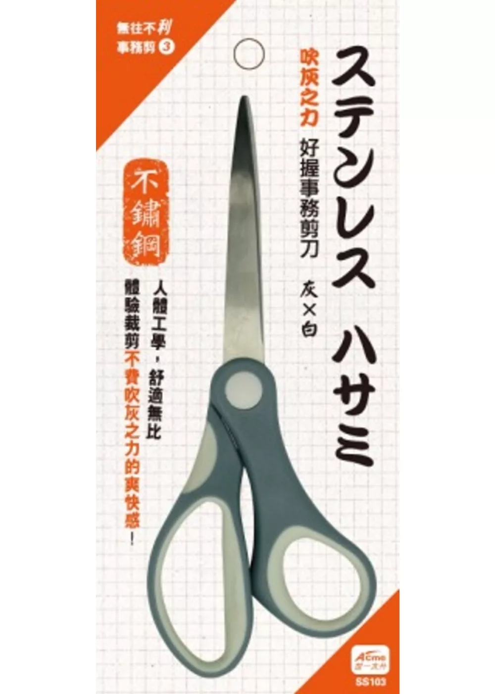 本產品握柄採防滑設計,不易滑手,好施力,金屬刀刃耐用易剪,適用任何場合, 是最方便實用的事務型剪刀。