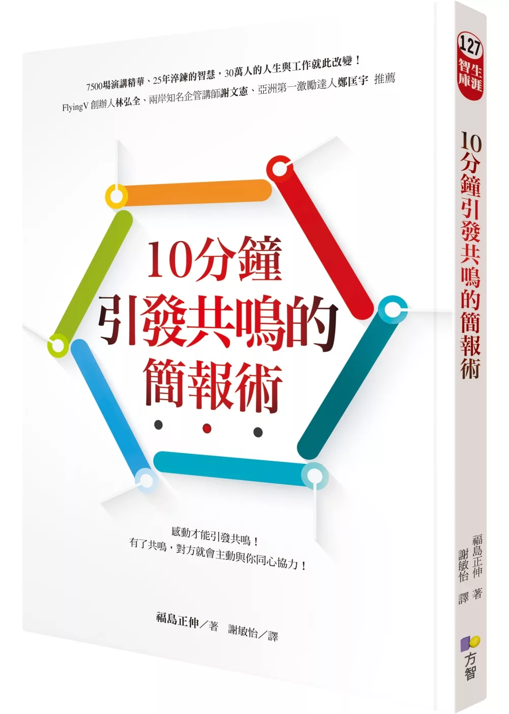 這也是我為什麼特別推薦福島正伸先生這本《10分鐘引發共鳴的簡報術》的原因。我十分認同裡頭分享的一些技巧,特別是他強調的三大重點,包括時間的掌握、以故事包裝主題、並且用熱情傳遞絕不放棄的理由等,正與我自己所提倡的擄獲人心的說話術不謀而合。