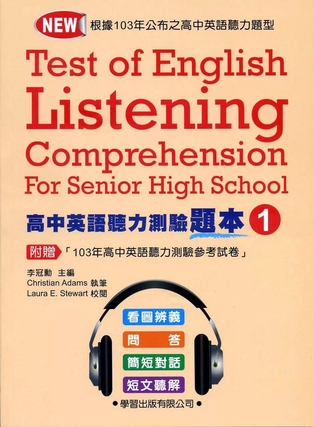 學習出版公司最新出版的「高中英語聽力測驗」共有10回(含103年大考中心公布之參考試卷),完全符合大考中心最新公布之103年參考試卷題型(102年「看圖辨義」為1個圖,103年改為4個圖),每回包括「看圖辨義」、「問答」、「簡短對話」與「短文聽解」四種題型,訓練自己在五十分鐘內作答完畢,因為考試時間是六十分鐘,讓自己習慣在較短的時間內寫完,考試時會更得心應手,幫助同學提早準備、有信心面對。