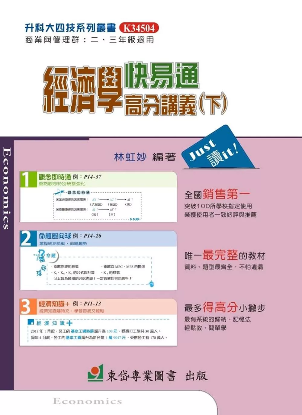 適用於二、三年級學生。本書運用「觀念即時通」、「綜合整理」兩個專欄,加強學生統整能力;除原有「範例計算」可訓練解析應用技巧,更新設置「犀利話題」與「命題風向球」,讓學生在學習當下立即掌握統測趨勢;另也新增「經濟知識+」,輔助非核心課程但須解釋的圖形與專有名詞,以幫助學生理解。