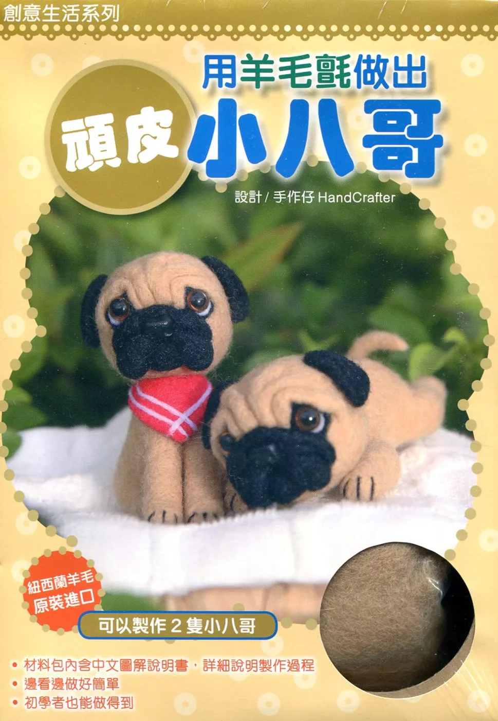 只要有羊毛跟戳針,就能做出超可愛的羊毛氈娃娃!羊毛氈娃娃其實沒有大家想的那麼難,只要利用隨書附上的羊毛、戳針,以及專用工作墊,照著書裡所介紹的作法,一針一針的戳刺,就能做出超可愛的頑皮小八哥!本書所附羊毛與戳針、專用工作墊等器具材料皆為紐西蘭原裝進口,顏色與材質深受手工藝愛好者的好評!