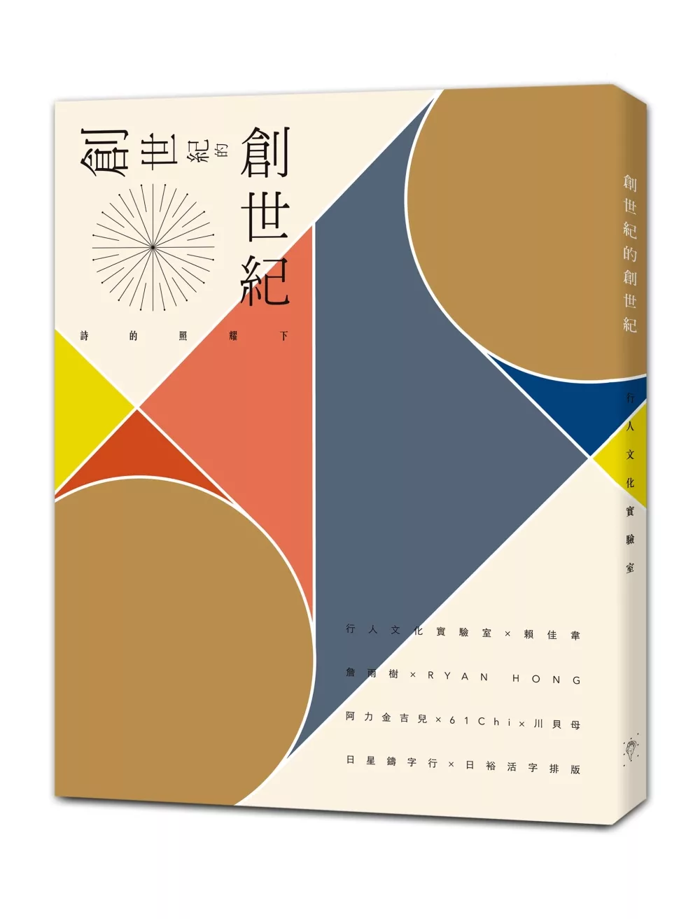 為此,我們邀請年輕設計師(賴佳韋)、拼貼藝術家(詹雨樹)、 [插|漫]畫家(阿力金吉兒、61Chi、川貝母[以及Ryan Hong])等人一同參與這個[稍嫌]自不量力的計畫。這本書從今日創世紀六十年出發(第一部分),聚焦早年超現實主義時期的發軔片刻(第二部分),以及三位創辦人(所謂「鐵三角」)的個人著作(第三部分),並附上我們認為談論創世紀詩刊的經典論文(附錄)。我們不打算詳述史料、文獻或過往歷史,而是盡量以文字與視覺為主角,因為我們深信,只要讀者能踏入這個詩的國度,不需要歷史與背景,創世紀群星的文字自能穿越時空,展現強大的力量。