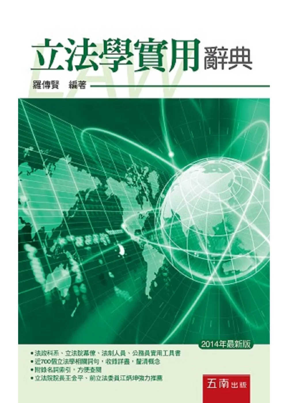 法制工作,除協助立法技術和提供法律意見外,尤重視行政與立法之溝通協調,並協助機關首長實現其政策合法化,故認識立法學的基本內容為不可或缺的首要課題。本辭典蒐集近七百個立法學相關詞句,分析其意義、功能或實務做法,部分內容附有例證或圖表。除說明立法相關詞語之基本概念及法律規定外,並蒐編行政機關直轄市現行法制作業手冊,輔以立法院實際發生之案例。附錄名詞索引,方便查閱,可供法政科系、立法院幕僚、法制人員、公務員等參考。