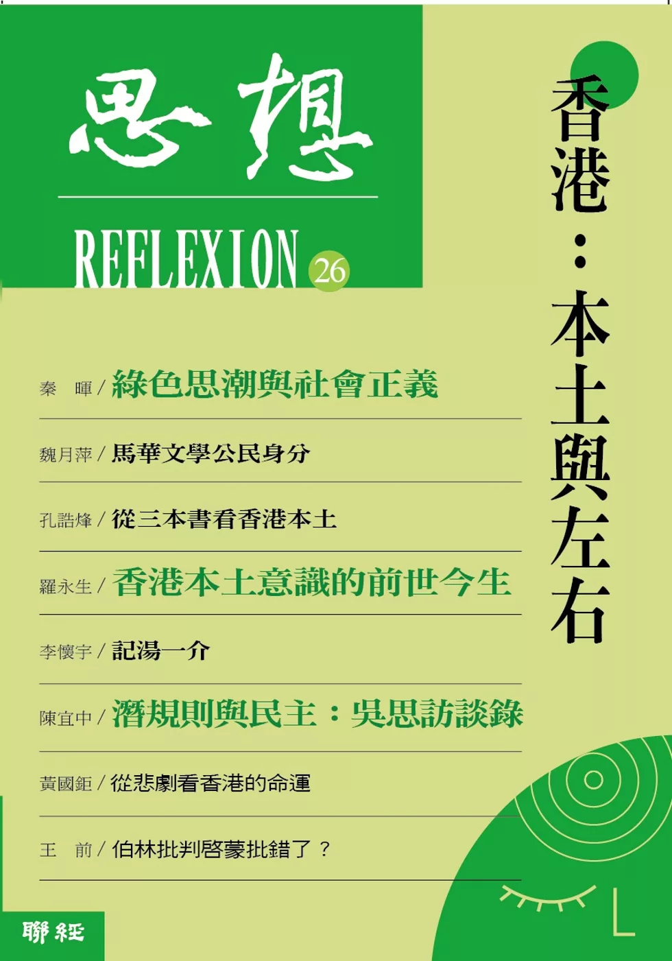 本期《思想》除了聚焦香港,還有文章分別梳理中越邊界的戰爭記憶、探討馬華文學中的身分認同問題、也介紹了馬來西亞華人政治思考的一些糾結之處。此外,秦暉先生對比分析「綠色」(環保)議題在中國與西方所處的政治脈絡之不同,問題意識獨特,見解犀利,對關心環境議題的讀者會很有啟發。