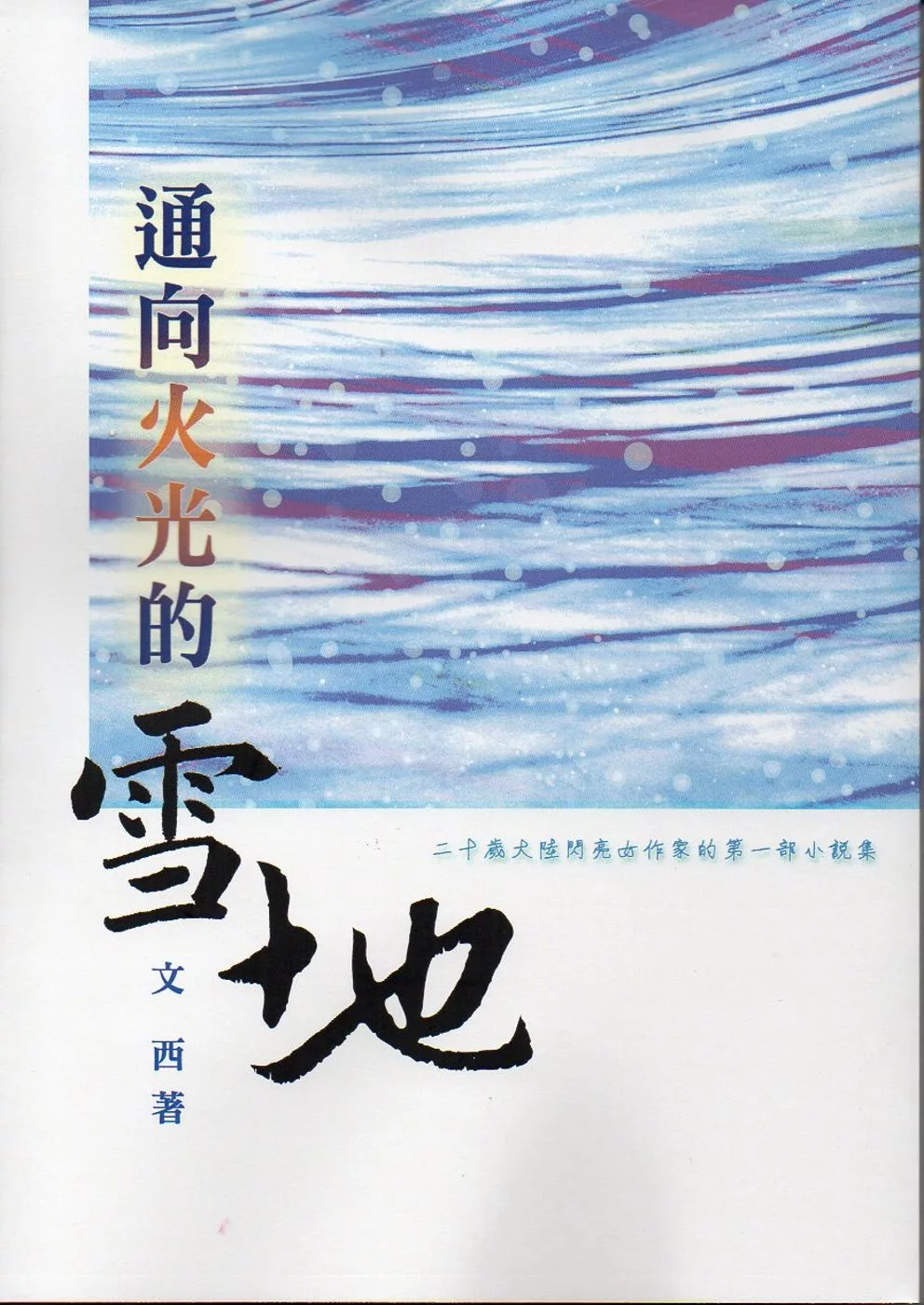 有一天,文西像從天而降,或從地下冒出來一般,突然找到我,要我給她的《通向火光的雪地》小說集寫序,著實嚇了我一跳啊!不是說她找到我的方式嚇著了我,而是這女孩不僅詩寫的不錯,小說集也要出版了,這是其一;其二,這時我才知道她是一個在校大二的學生,僅僅才二十歲,這麼年輕,真嚇人!