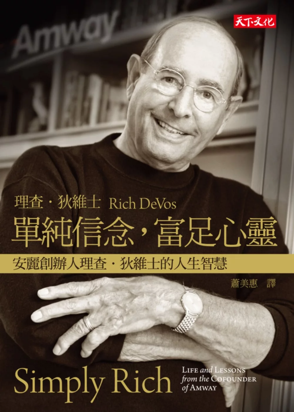 《單純信念,富足心靈》一書,是安麗創辦人理查.狄維士先生的最新著作。雖然他謙稱這不是一本完整的人生自傳,但從內容中其實可以發現,所有啟發他人生的重要觀念,以及塑造成功事業生涯的經驗,都已經記載在這本書當中。狄維士先生在書中強調的一點是,除了遵循勤奮、毅力、堅定信仰、經營家庭生活、崇尚自由企業等價值觀之外,他能夠成功的最大原因,就是「永遠懷抱幫助別人的心」。
