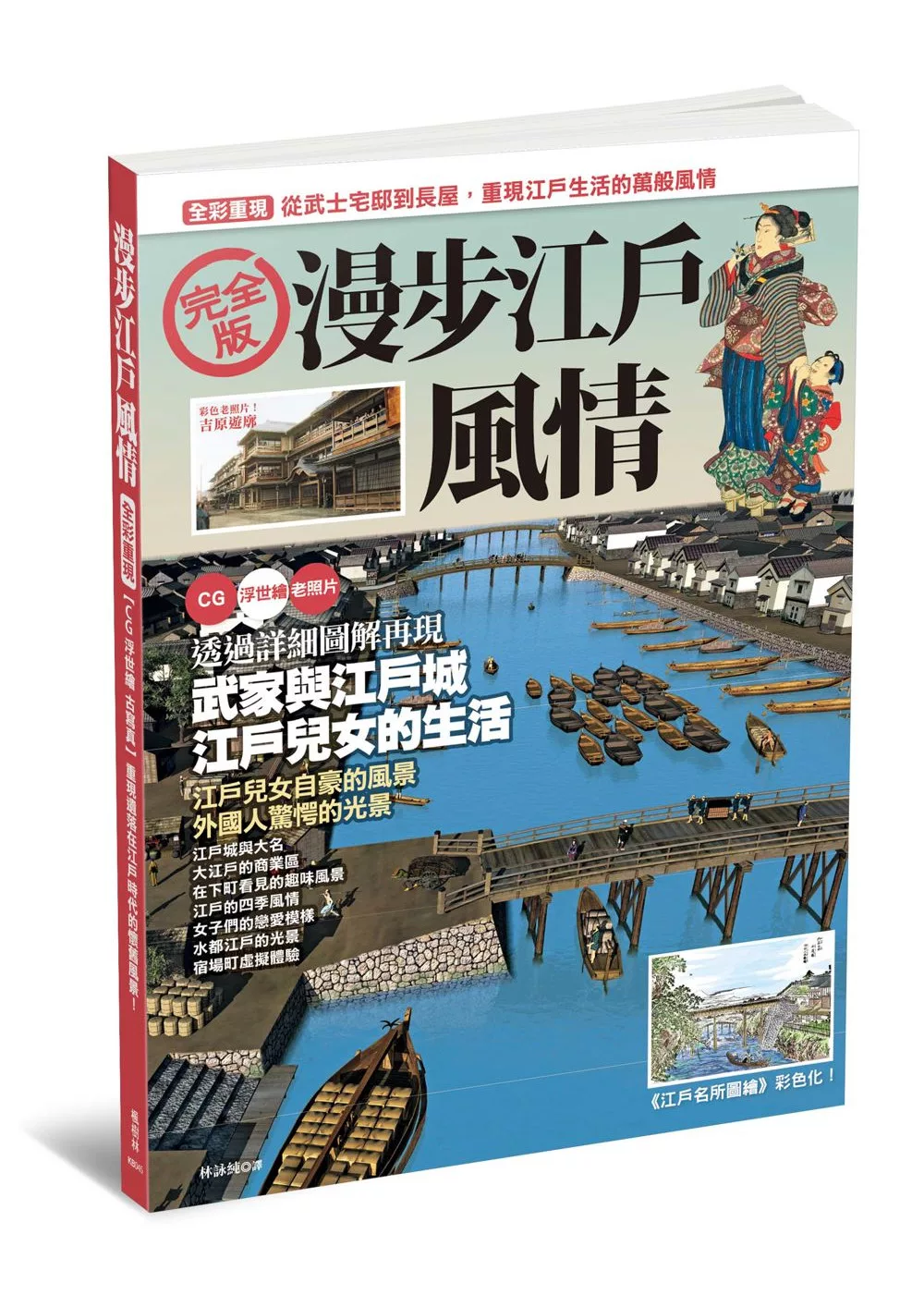 本書不僅延續CG日本史這書系的特色,透過許多精美的CG圖呈現江戶時期的樣貌,更收集了許多當時拍攝的照片、圖片,重現江戶的天色與地景。透過這些資料,可看到江戶人的穿著打扮、吉原花街的實際樣貌、江戶人從事的活動。重視季節的江戶人,會隨著每月的風景變換籌辦不同活動,3月大潮來訪,女性便到海邊採貝;10月男性則借口賞楓到品川遊廓⋯⋯看完本書,如同進行了一趟江戶穿越之旅。